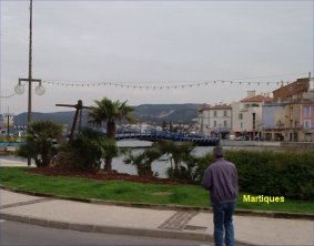 We spreken ook af dat we vanaf nu in eerste instantie rust willen betrachten en afhankelijk van de ervaringen en het weer wel zien hoe verder. Een mooi voornemen maar er moet wel even gezeild worden, de volgende dag maandag 3 mei, willen het zilte nat proeven al vraagt onze Engelse buurman zich af of dat verantwoord is. De weerberichten zouden zeer ongunstig zijn met een oostenwind kracht 7, het waait ook behoorlijk pittig maar de buurman is een heel voorzichtig type, op basis van dit soort weerberichten gaan ze niet de Rhône op de weg terug, en dat is simpel weg op rivieren varen. Eenmaal buitengaats is het inderdaad vrij pittig, de Kaaiman heeft er wel zin vrolijk danst hij over de golven en boort zijn neus in het zilte nat. Voor de bemanning is het nog even wennen temeer omdat de omstandigheden voortdurend wisselend zijn en de voorspellingen van de buurman toch wat blijven spoken. We besluiten de trip kort te houden en naar de overkant van de baai De Fos te gaan, daar is toegang tot een kanaal dat leidt tot een binnen(zout) meer Etang de Berre, aan het eind van het kanaal bij Martiques zien we onder de brug door dat het meer ook aardig spookt en gaan de haven in. Alle schepen in de haven liggen aan ankerkettingen, waarvan het merendeel met de achterkant naar de steiger. Er is 1 plaatsje vrij met een ankerboeitje wat we op kunnen pikken en na enig gestuntel en gescheld op elkaar liggen we dan toch zoals het hoort. Net als we de omgeving willen verkennen wordt er naar ons geroepen dat we op hun ligplaats liggen, dus maar weer losgemaakt en verwijst men ons naar een andere lege plaats, maar daar drijft geen boeitje dan gaan we maar tegen de ander boot aanliggen die al wel aan de ketting ligt. Net als we dit geklaard hebben wijst een vriendelijke man ons op een touw dat vanaf de steiger het water in verdwijnt verbonden is met kettingen die bedoeld zijn om af te meren, dat doen we alsnog en liggen nu aan de (eigen) ketting. Een wijze les waar we de komende tijd nog veel aan zullen hebben want uit de almanak blijkt dat veel havens zo zijn uitgevoerd, wel anders dan gewend zijn.
