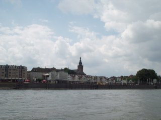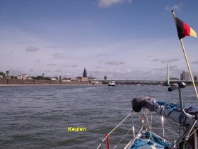 De rest van de onze reis gaat rechtstreeks naar Nijmegen en maken we zoveel mogelijk kilometers per dag, de Rijn is tot Bonn een mooie en aantrekkelijke rivier daarna wordt het vlakker en saaier, een gunstige uitzondering is de stad Keulen maar Duisburg en wat daarna komt spreekt ons niet aan. Opmerkelijk is dat de haventjes die we nog aandoen in Mondorf en Wesel minsten 3 verenigingen in havenkom hebben allen met een eigen clubhuis en toegangshek, economisch lijkt dat niet echt gunstig. De tocht naar de haven van Wesel, was erg lang, in de jachthaven van Duisburg hebben we diesel getankt en wilden nog 20 km verder varen, het werden er echter 40 omdat er niet eerder een haven in zicht was en maakten we die dag 157 km. We houden behoorlijk mooi weer, af en toe dreigt er wel een bui maar de zon wind, het varen op dit deel van de Rijn geeft ook nauwelijks problemen, de laatste dag van Wesel naar Nijmegen worden we in de 4 uur en over 60 km. 4 x opgelopen door een vrachtvaarder en dat op maandagmorgen. Bij de sluis in Weurt konden nog net aansluiten bij de laatste invarende pleziervaart, evenzo was dit het geval bij Grave, waardoor we met weinig oponthoud op maandag 5 juli om 16.30 uur, na bijna 14 weken, afmeerden in onze thuishaven.