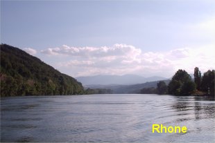 Donderdag 17 juni 12.00 uur, we zijn in Lyon en de Rhône, 320 km. zit er op! Geen aangename klus, vanaf St. Louis flinke tot harde stroom tegen en 3 dagen harde mistral wind. Met het zoveel mogelijk afsnijden van bochten en het varen van binnenbochten hebben we een gemiddelde gehaald van 7.5 (kaart) kilometers per uur. Te vergelijken met 3 x de IJssel stroom opwaarts varen met 4 sluizen per keer, het landschap kennen we al en is zeker aan het eind niet imponerend maar eerder saai doordat er vrij veel gekanaliseerd is. De mast laten wee nog staan met de hoop dat we de eerste 40 km de wind mee hebben en het zeil ons een steuntje in de rug kan geven tegen de stroom in, maar de wind staat pal tegen, behoudens 2 langere bochten hebben we er meer hinder dan gemak van.