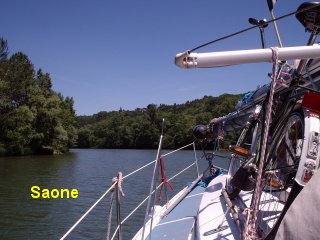 Ook zijn er in dit deel van de Saône veel (vrije) aanlegplaatsen, veel stadjes doen met een "Halte Fluviale" hun best om de watersporters te lokken, het stadje Trévoux weet ons te verschalken en genieten we van de mooie omgeving en nogmaals het prachtige weer. Onder deze goede omstandigheden beslissen we dat we de weg naar huis nemen via kanalen en rivieren die we nog niet gehad hebben. We gaan via het kanaal Rhône au Rhin naar de Rijn in Duitsland en laten ons dan met de stroom meevoeren naar Nijmegen. We verwachten dat we rond 1 juli bij Straatsburg zullen zijn en een week of 2 later thuis, Jan vraagt zich af wat hij dan nog met een maand vakantie moet maar daar kan hij nog rustig over nadenken eerst maar eens zien thuis te komen. Eerst nog 200 km Saône, welgemoed en onder een warme zon vervolgen we onze reis langs deze mooie rivier,